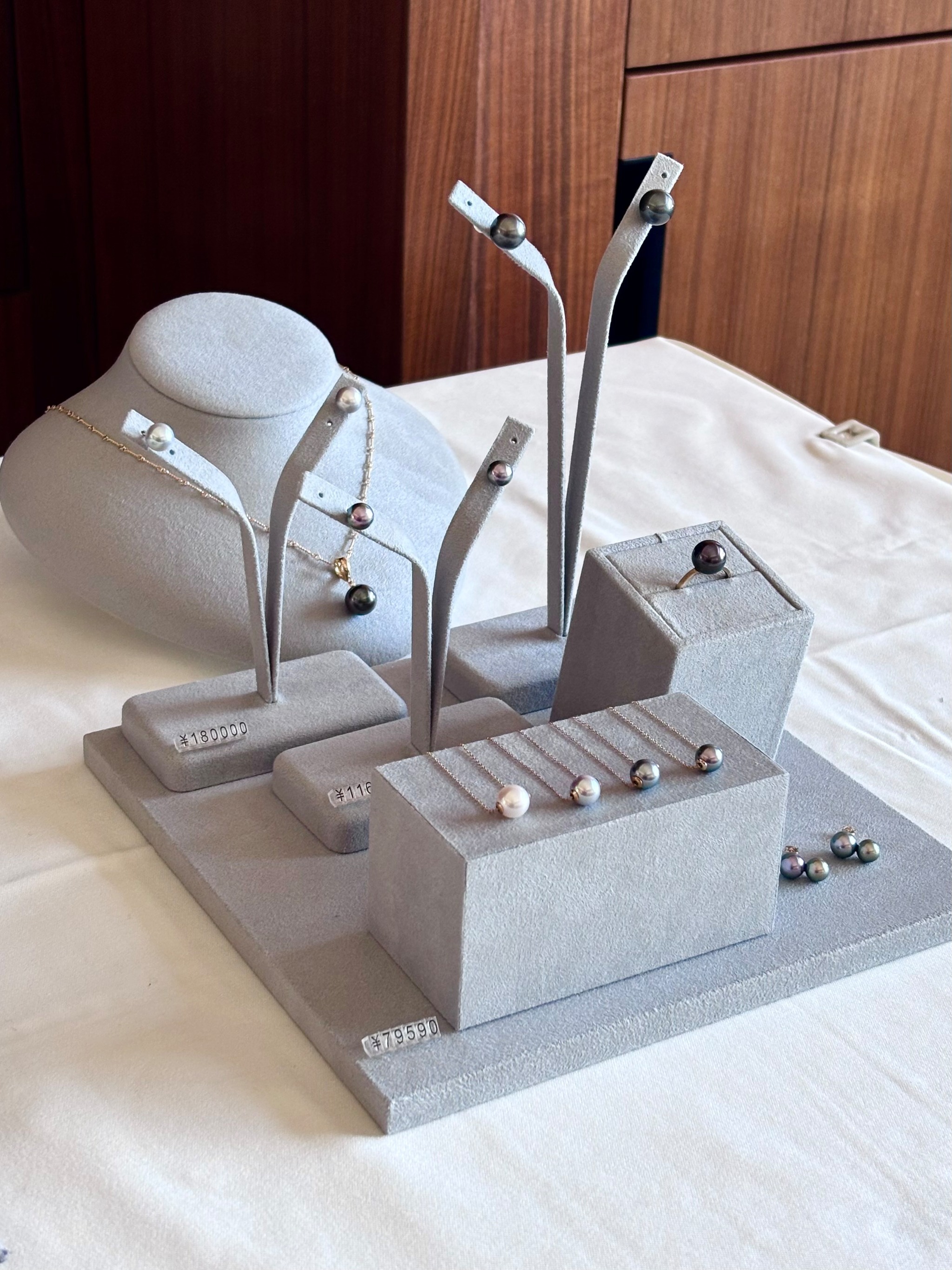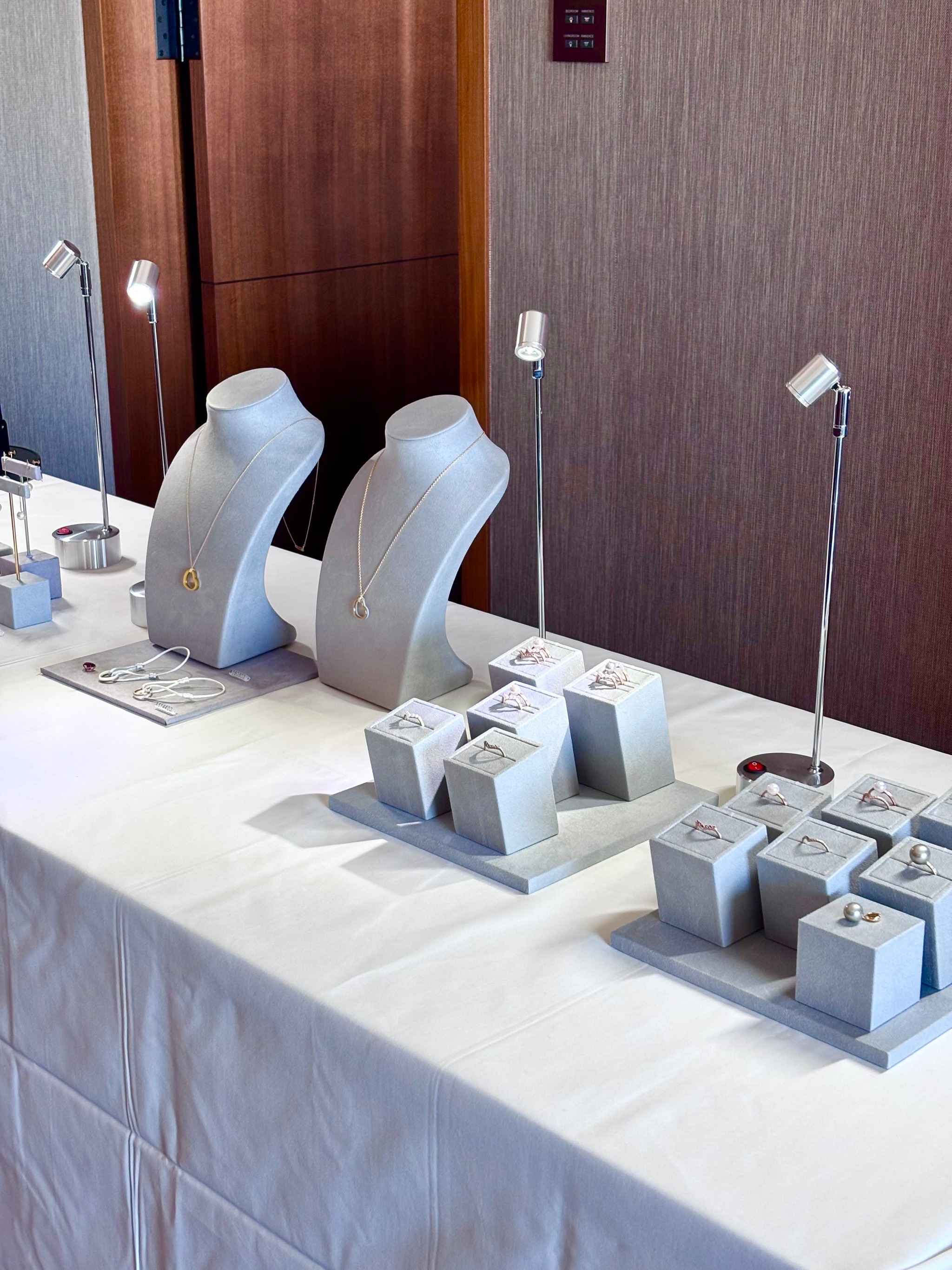 お部屋では、新作リングや重ねづけのスタイルを展示。参加者の皆さまには、実際にジュエリーを手に取りながら、スタイリングの楽しさやアイデアを共有いただきました。