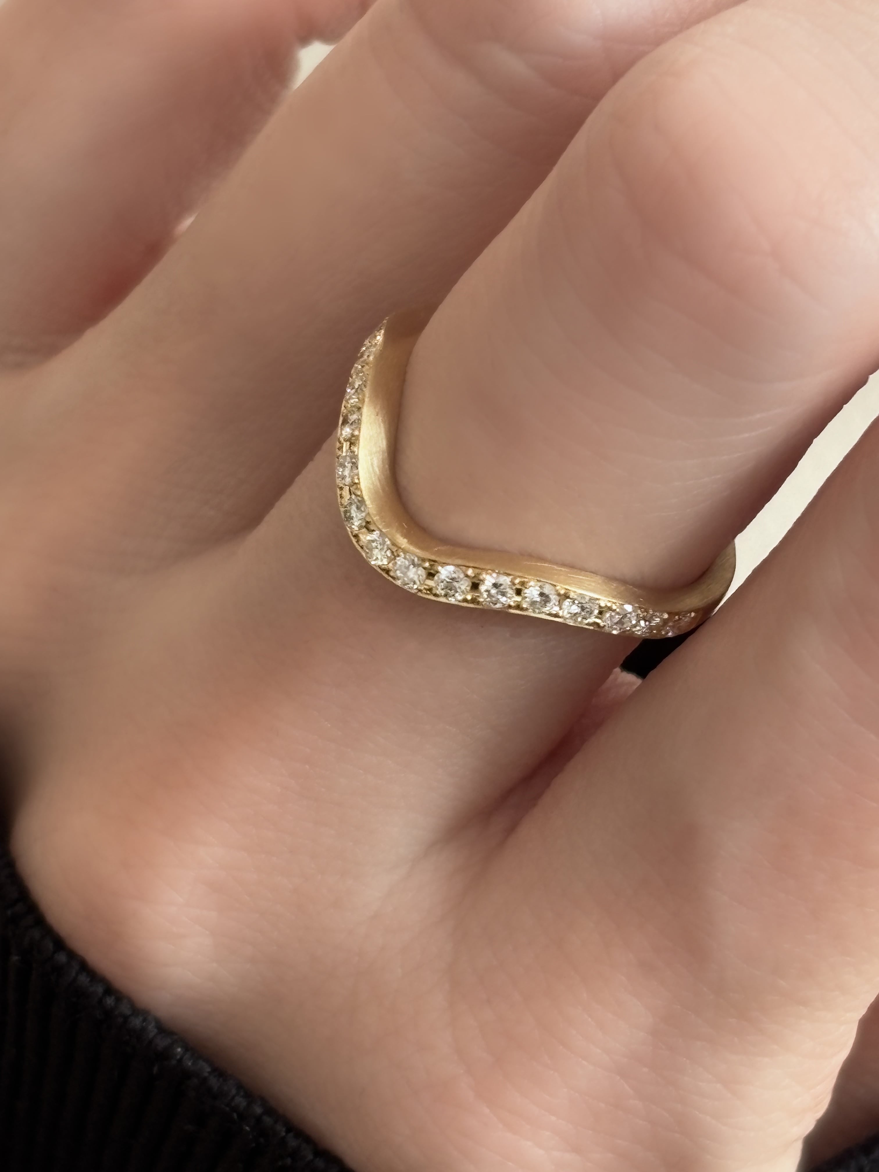 ダイヤモンドがリングの半周に留められた、ハーフエタニティーリングです。