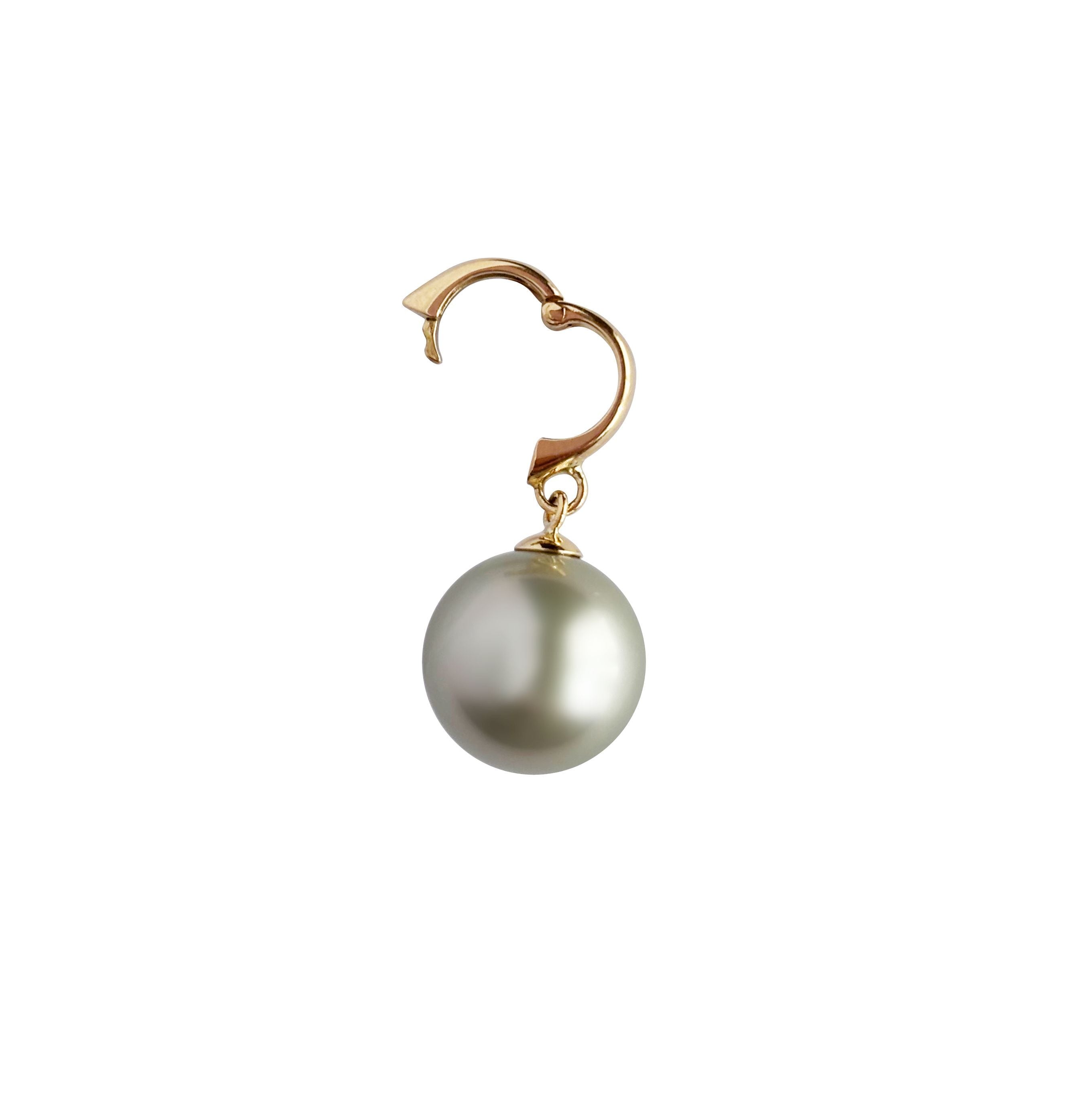 淡いグリーングレー系の黒蝶真珠を主役にした、K18イエローゴールドのペンダントトップです。