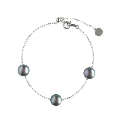 深く神秘的な光を放つアコヤ真珠のピーコックカラーを、プラチナで。存在感のある3珠が手首に描く美しいラインは、一生ものにふさわしい重厚感と気品を湛えています。